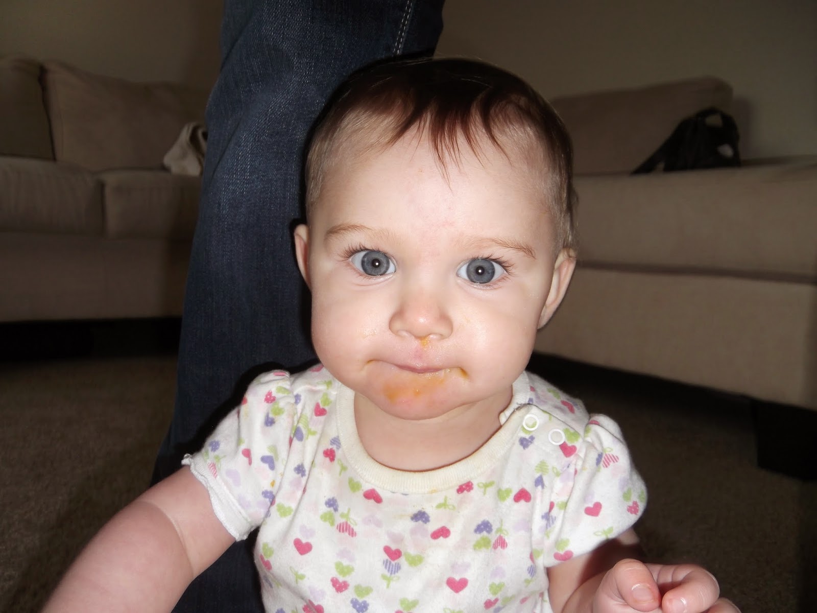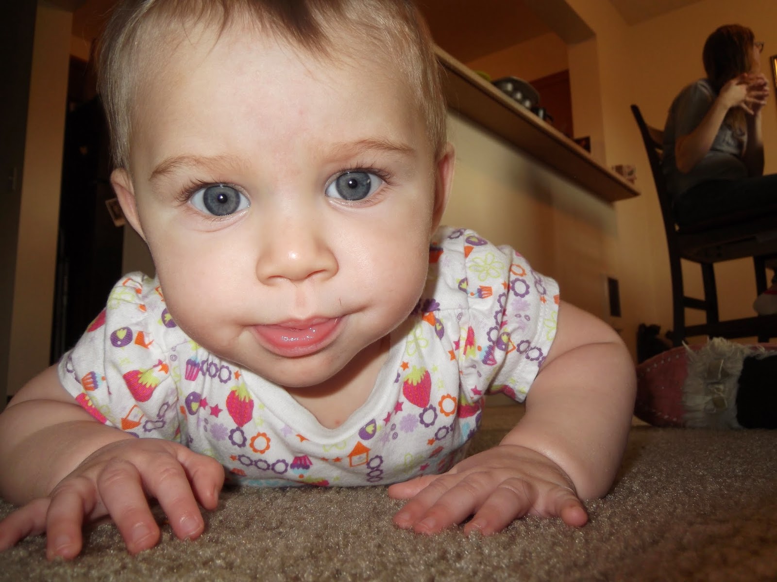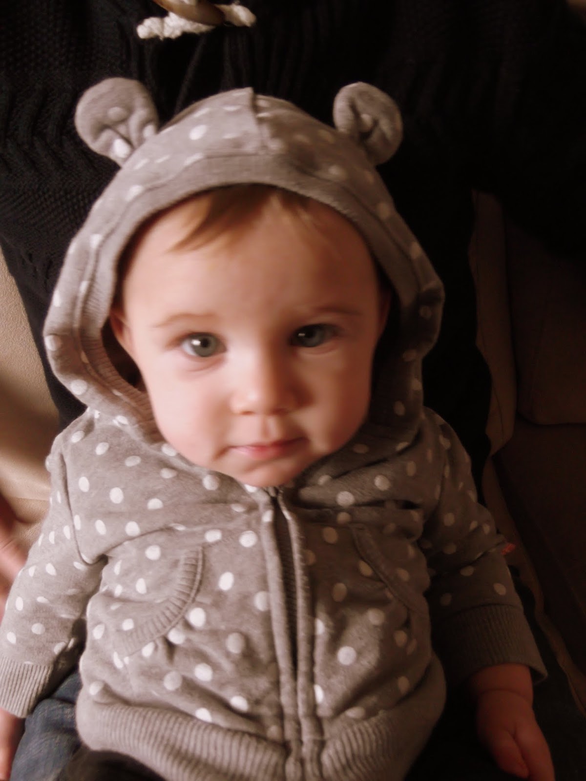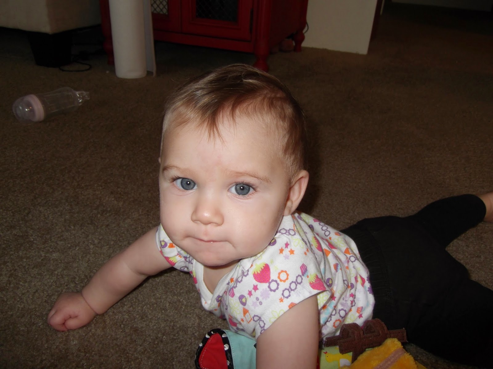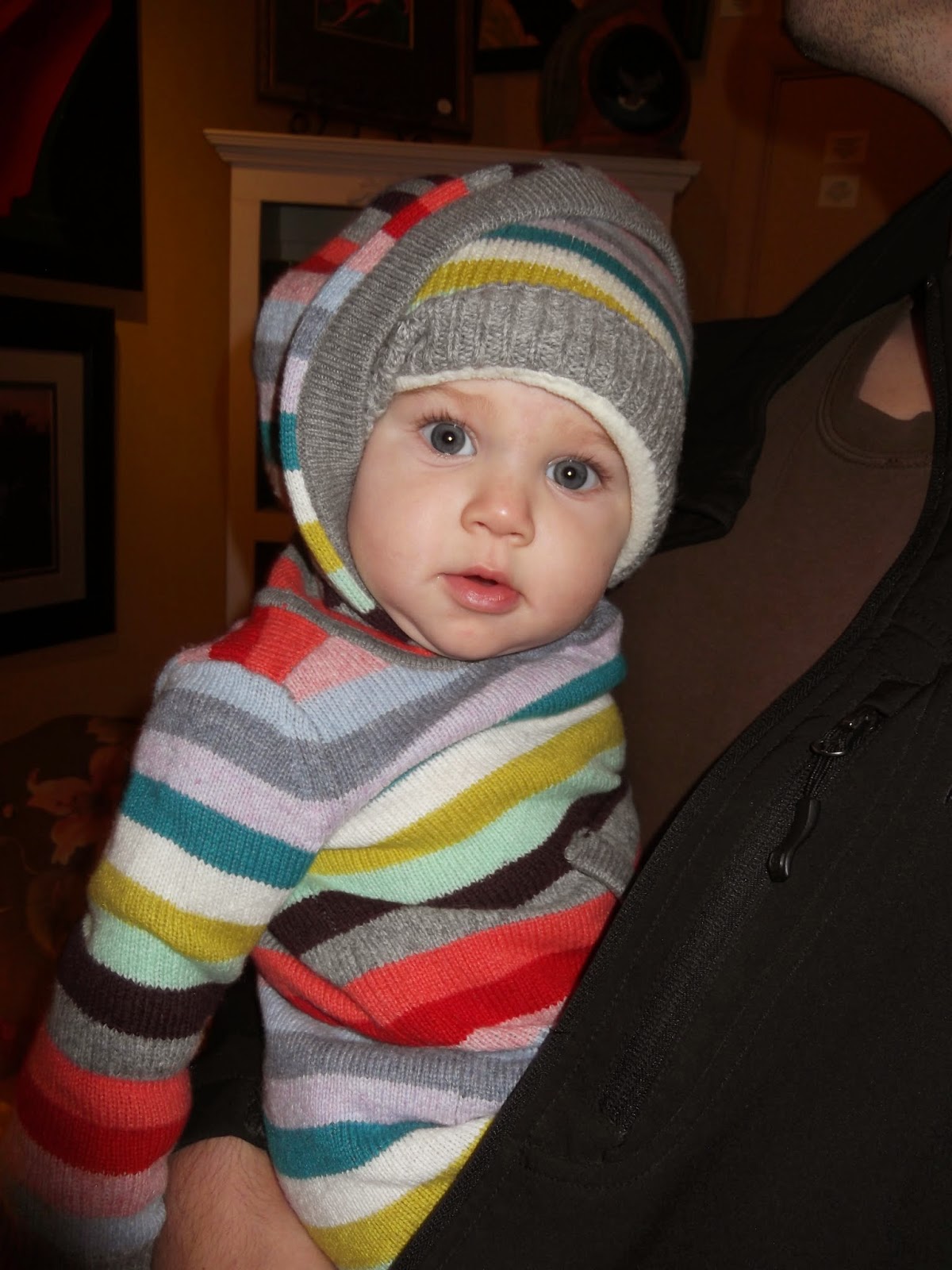 Pictured below is Audrey with her diaper bonnet! She loves diaper bonnet.