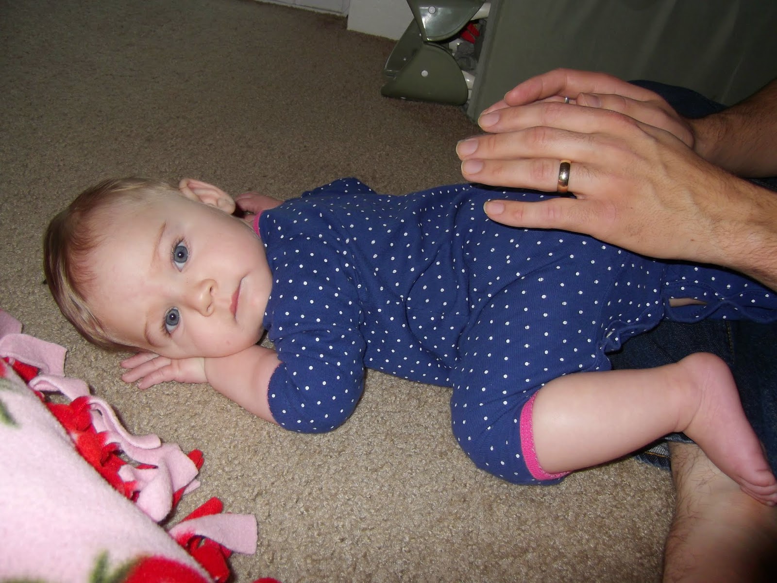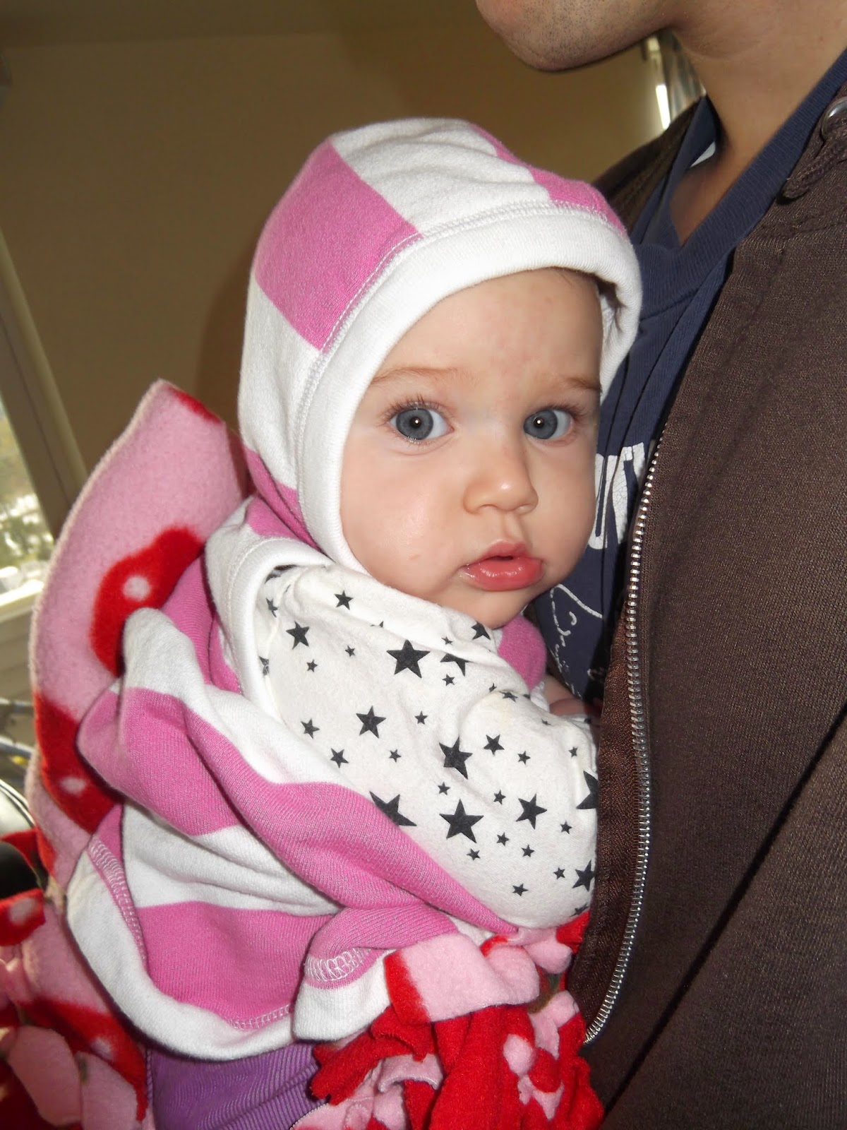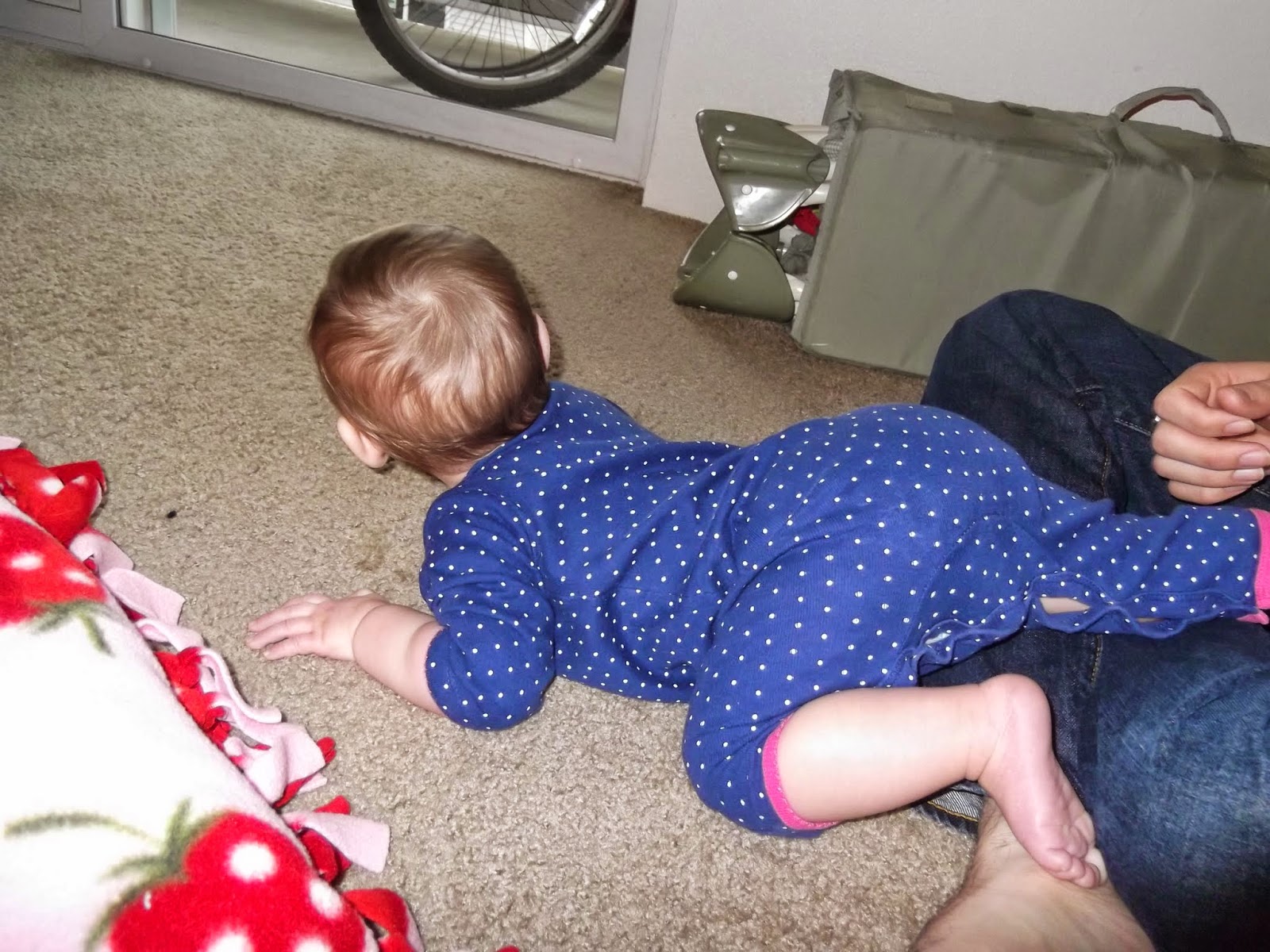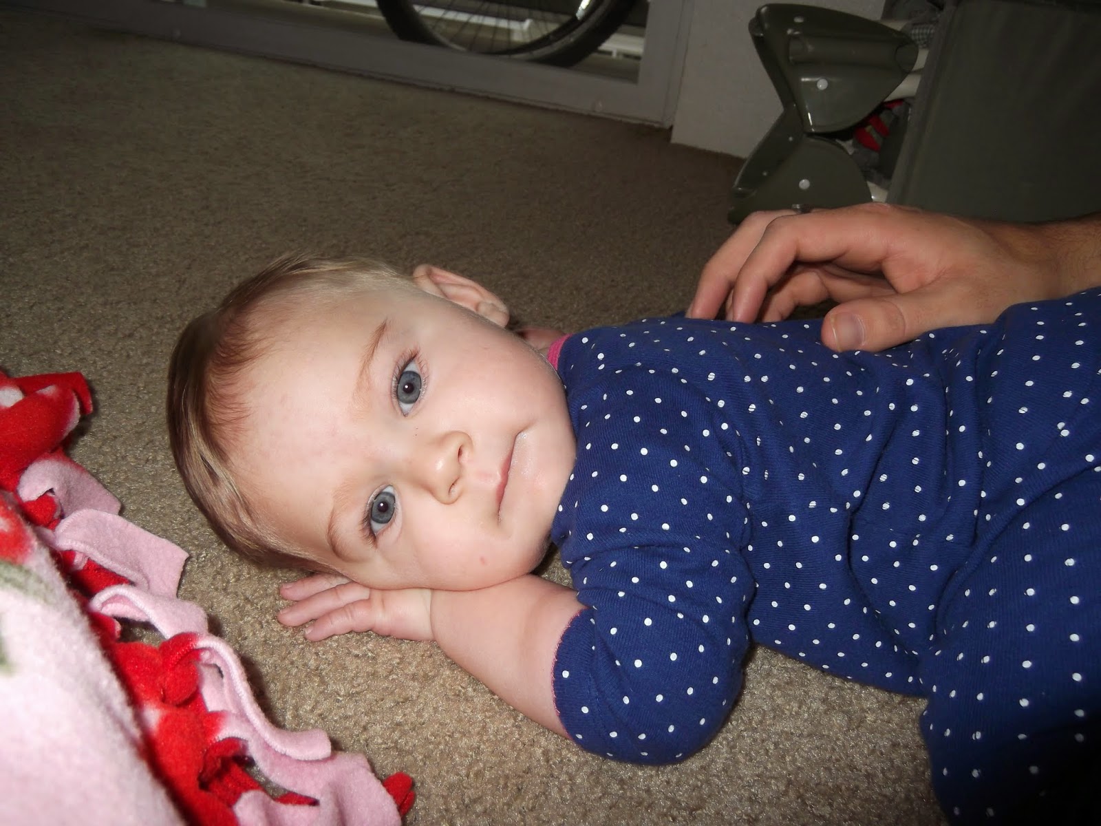 Pictured below is Audrey with her diaper bonnet! She loves diaper bonnet.