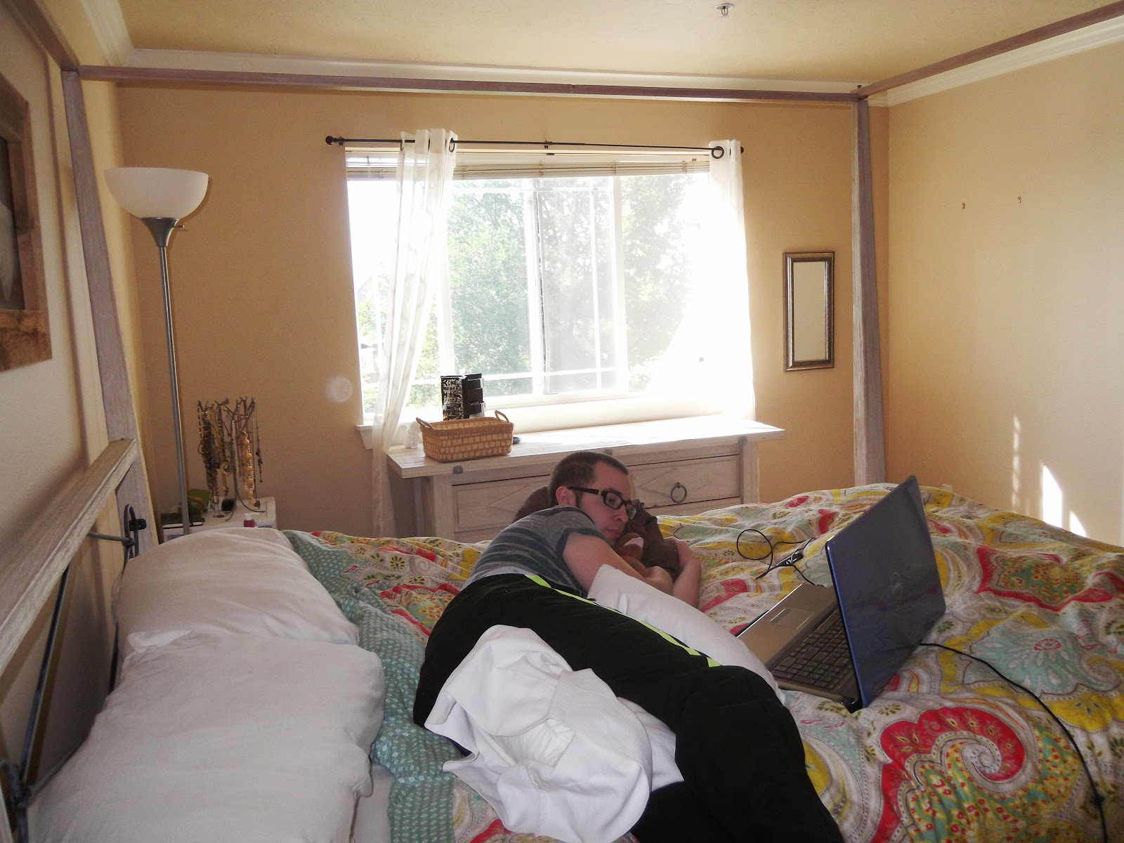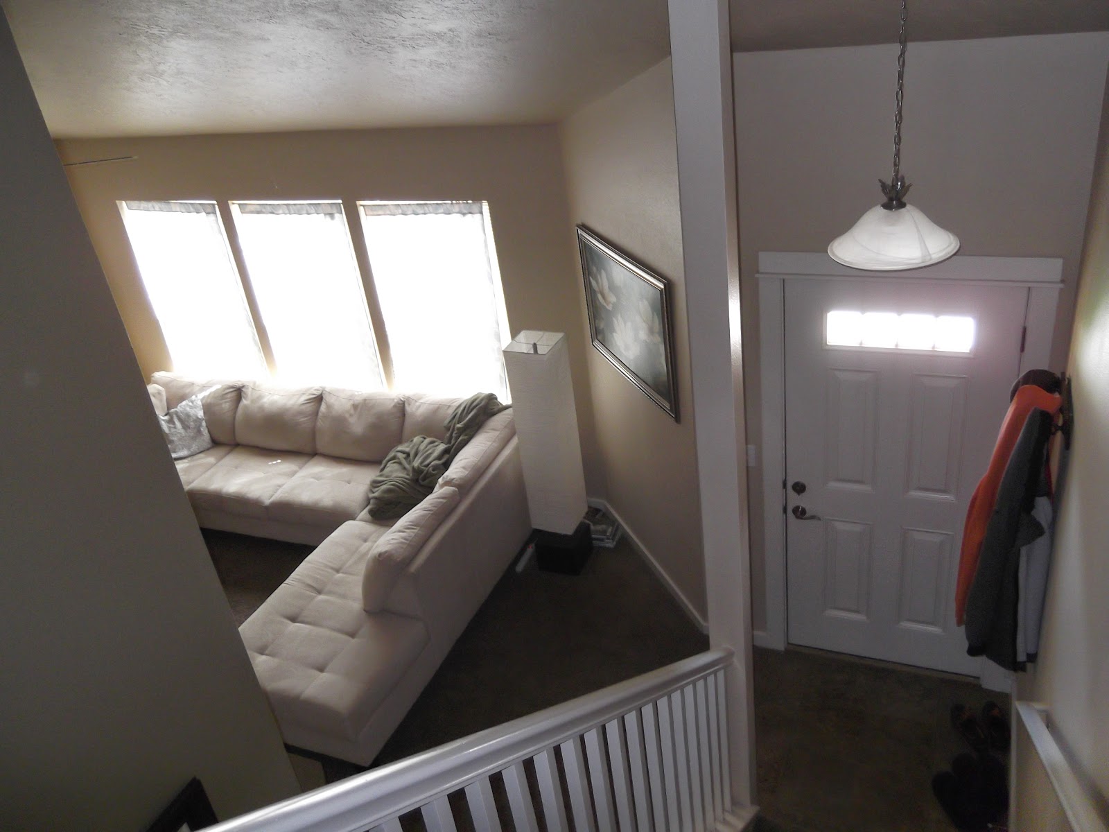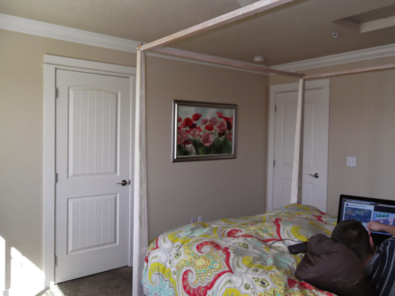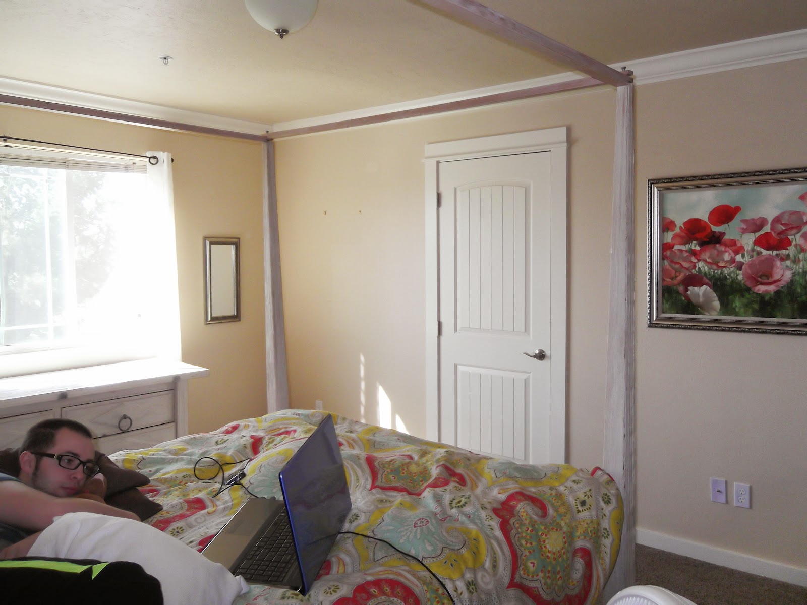 I wanted to get some pictures of our place before we move! When we lived in Poky, I didn't take hardly any pictures of the inside of our place until we had sold everything, cleaned it, and were walking out the door. SO here is the master bedroom upstairs. It gets great light in the afternoon: